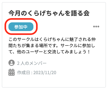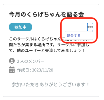 参加しているサークルからの退会はサークル画面から行うことができます。