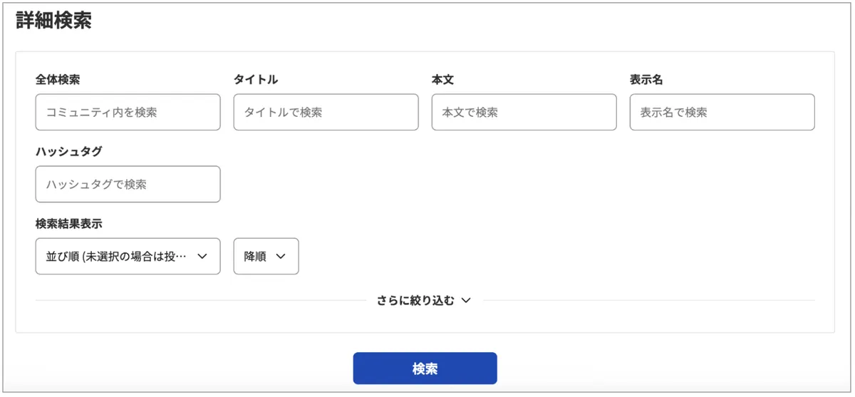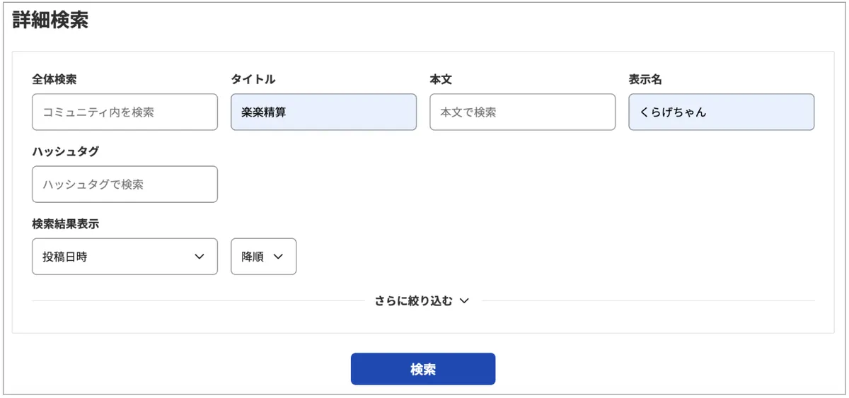 検索した文字列が本文中に含まれている投稿のみ表示されます。